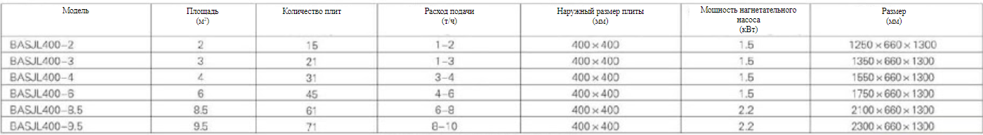 Материал рамы: Нержавеющая сталь 304; материал плиты: Нержавеющая сталь 304 (возможно изготовление из стали 316L или полипропилена) Материал уплотнительного кольца: белый силастик Рабочее давление: < 0,4 МПа; Рабочая температура: < 120^C Основные размеры: толщина плиты: 13 мм; Объем одной отдельной камеры: 4,8 л Способ отжима: Винтовая передача/ручной гидравлический насос (Прочие типы: Ручной домкрат/гидравлический цилиндр с автоматической системой управления и т.д.) Фильтрующий материал: Фильтрующий картон, фильтрующая бумага, фильтрующая мембрана, фильтрующее полотно и т.д. Тонкость фильтрации: Фильтрующее полотно с размером ячейки от 200 до 300 меш для грубой фильтрации, фильтрующая бумага или мембрана с размером ячейки от 0,22 до 0,45 мкм для тонкой фильтрации.